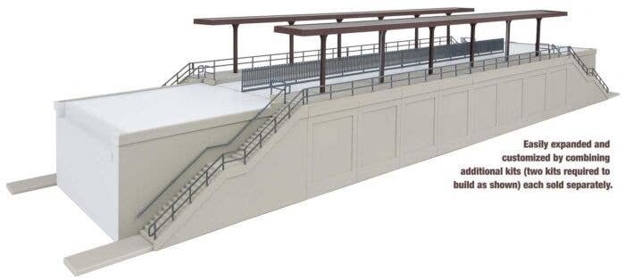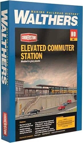 Combine roads and rails in any HO scene with the Cornerstone Urban Road & Rail Overpass kits. These highly detailed HO structures are typical of common designs in use from the 1900s on as increasing auto traffic made replacement of grade crossings a better option, and many are still in use today. A realistic addition to commercial, industrial and suburban areas, they′re also easy to use with the Cornerstone Asphalt, Brick and Concrete Street System kits (each sold separately). Each model features detailed plastic parts, molded in concrete and dark gray. For more information about the entire Cornerstone Engineered Bridge System click here The Elevated Commuter Station Kit features: Perfect station-stop for mass transit or commuter trains Fits big city scenes in all popular eras Includes 4 tall, 4-panel retaining walls each measuring 8 x 2-1/2′ 20.3 x 6.3cm - matches parts in Urban Retaining Walls (#933-4562, sold separately) Parts for 4 complete platforms - build as 2 short double- or one long single-track station Detailed stairways (2), supports, platform canopies, railings & between tracks fencing Build longer by combining kits Molded in medium gray and concrete colored plastic as appropriate Deck requires modeler-supplied 1/8′ (1.1mm) thick styrene sheet, sold separately