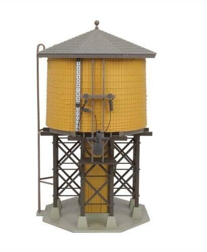 The Walthers Cornerstone Built-ups HO Scale Wood Water Tank is a typical wooden water tank based on those used on railroads from coast to coast. Constructed to satisfy steam locomotives′ thirst for water, this fully assembled and decorated model adds instant steam-era realism to any layout. Appearing early in the 20th century, tanks like this were a fixture of railroad facilities until the last days of steam. It′s perfect for busy engine terminals, small town yards and near smaller depots where engines were watered during the station stop. Fully assembled, the model features detailed wooden support timbers while the tank is molded in the same main color as other Trackside Built-up buildings. The spout on the Wood Water Tank can be moved to either the up or down position to add more action to any scene. Use the Wood Water Tank among other Cornerstone HO Scale railroad buildings. Fully assembled and decorated Molded in authentic, multiple colors Use with any railroad Fits steam or classic-diesel eras The Wood Water Tank measures: 3-1/2 x 3-7/8 x 6-5/8′ 8.7 x 9.6 x 16.5cm The Walthers Cornerstone Built-ups Wood Water Tank is a typical wooden water tank as used on railroads from coast to coast. Constructed to satisfy steam locomotives′ thirst for water, this fully assembled and decorated model adds instant steam-era realism to any layout. Appearing early in the 20th century, tanks like this were a fixture of railroad facilities until the last days of steam. It′s perfect for busy engine terminals, small town yards and near smaller depots where engines were watered during the station stop. Fully assembled, the model features detailed wooden support timbers while the tank is molded in the same main color as other Trackside Built-up buildings. The spout on the Wood Water Tank can be moved to either the up or down position to add more action to any scene. Fully assembled and decorated Molded in authentic, multiple colors Use with any railroad, any era Measures: 3-1/2 x 3-7/8 x 6-5/8′ 8.7 x 9.6 x 16.5cm