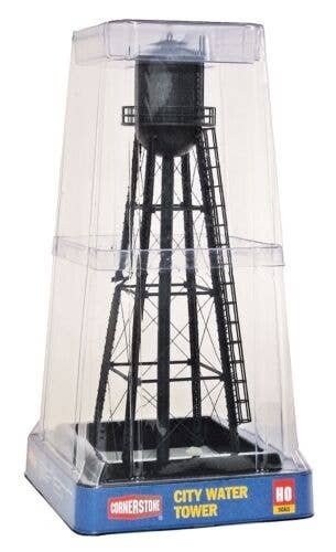 The prototypes for the Walthers Cornerstone HO Scale City Water Tower are landmarks in small towns, big cities and factories. In use since the early 1900s, steel Water Tanks like these are still common sights today. Proudly emblazoned with the name of the town or the company, you′ll also find them at hospitals, college campuses and military bases. Ready to add to layout scenes, the assembled water tower comes in your choice of black or silver which are common prototype colors. Authentic details include a conical roof, caged ladder, and concrete base. A set of alphabet decals is included so you can personalize your water tower with town names, industries and more. The assembled City Water Tower is one of many Cornerstone HO Scale industry structures. Fully assembled Realistic latticework supports Includes alphabet decals This layout-ready City Water Tower measures: 3-3/4 x 3-3/4 x 11′ 9.3 x 9.3 x 27.5cm