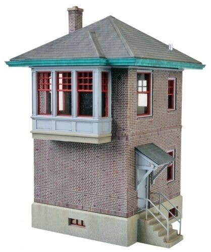 The Pennsylvania Railroad was noted for its unique structures and the Walthers Cornerstone HO Scale PRR Block and Interlocking Station captures the family look of the railroad′s buildings to a tee. On the Pennsy brick towers were used along the line at busy junctions, interlockings and other block stations. Inside operators shepherded trains through complex trackwork by lining signals and turnouts. These towers were used on railroads affiliated with the Pennsy, successors Penn Central and Amtrak and are extremely similar to towers on other railroads. A few have been preserved by historical groups in the modern era. The PRR Block and Interlocking Station kit features correct Flemish Bond brick walls, concrete foundation and a realistic operator′s bay. Use the PRR Block and Interlocking Station as part of a realistic scene alongside other Cornerstone HO Scale railroad buildings. Authentic Pennsy design - similar towers used on many roads Correct Flemish Bond brick construction, bay window and other details Signs for PRR, PRSL, PC, Amtrak and LIRR Molded in four colors and includes clear acetate glazing The PRR Block and Interlocking Station measures: 2-7/16 x 3-1/8 x 4-7/8′ 6.1 x 7.9 x 12.3cm
