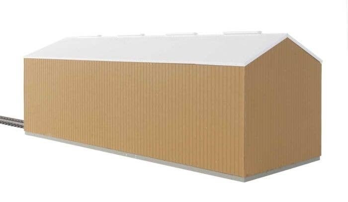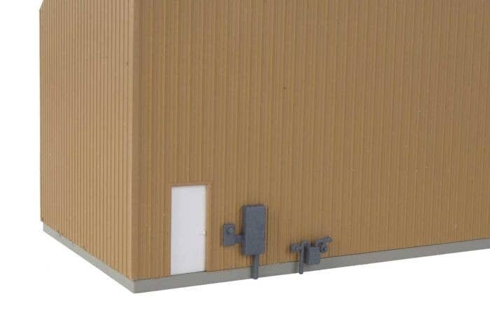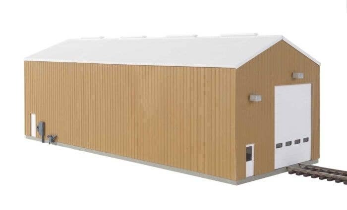 Service your motive power in style with the Modern Single-Track Engine House kit from Cornerstone! Typical of prefab metal buildings adapted to the needs of railroads large and small, the finished model is typical of service and inspection facilities used by short lines, industrial roads and supporting operations on large railroads too. This versatile building is loaded with features that include: Perfect facility for short lines, industrial roads and more Fits 1970s to the present Build as run-through or single-ended structure - parts included! Easily customized for left or right entry with two styles of front and rear walls included Window-style or Plain 18′ (5.4m) Overhead and Entry Doors Two styles of nonworking security lights, plus separate gas and electric meters Molded in three colors with acetate for windows Measures: 11 x 4-1/4 x 4-1/4′ 27.9 x 10.7 x 10.7cm Track centerline: 1-1/2′ 3.8cm Overhead door - Scale 18′ 5.4m tall