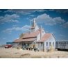 The Walthers Cornerstone HO Scale Sunrise Feed Mill is based on a typical grain-handling building used across the continent. Back when America moved by horses instead of horsepower, the local feed mill was an important trackside customer in towns of every size. Here, all types of grains were ground for animal feed and then bagged for easier handling and storage. They′re still going strong in areas where livestock and dairy production requires a constant supply of feed. Many of those still in use have been expanded to include multiple modern concrete and steel elevator silos. Others serve suburban customers with pet foods, bird food, lawn and garden supplies and more. This detailed, easy-to-build model is complete with authentic wooden drop siding, a large dust collector for the roof, rail and truck or wagon unloading docks and colorful decals. As shown the finished model measures: 15-1/8 x 4 x 7-3/4′ 37.8 x 10 x 19.3cm The Sunrise Feed Mill is just one of a wide variety of Cornerstone industrial buildings. Easy-to-build plastic kit Prototypical drop siding wood walls Boxcar-height trackside loading doors Rooftop dust collector Typical structure used from the early 1900s to the present Truck and wagon loading dock with awning Colorful decal signs Molded in appropriate colors