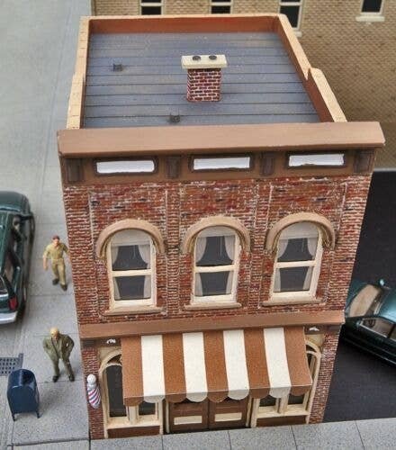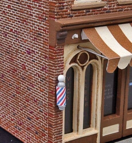 The Walthers Cornerstone Vic′s Barber Shop kit is a wonderful storefront addition to your HO city scenes. Affordably priced, highly detailed and easy to build with plastic parts molded in color, Vic′s Barber Shop is perfect for business districts in any size city. Typical of structures found all over North America, Vic′s is complete with a barber pole, colorful awnings and signs for the finishing touch. Vic′s Barber Shop is just one of many Cornerstone HO Scale businesses that will add interest to your layout. Brick exterior Windows and doors molded in place for fast assembly Printed detail sheet with colorful awning, window treatments and simulated neon signs Window acetate Specially designed barber pole Molded in two colors Perfectly proportioned to work with Merchants Row I 933-3028 and II 933-3029 kits, each sold separately. Vic′s Barber Shop measures: 2-1/2 x 3-1/2 x 3-3/8′ 6.4 x 8.9 x 8.6cm
