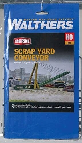 The prototypes for the Walthers Cornerstone Scrap Yard Conveyor receive cut scrap metal from the Ferrous Shear or bales from the Baler-Logger and moves them into a truck or gondola for shipment. Sometimes the material is piled on the ground where it can later be picked up by an electromagnetic or grapple-type crane. While offered as an accessory for use with the Walthers Cornerstone Washington Salvage Scrap Yard kits, this conveyor is an ideal addition to any industry that processes scrap metals. Scrap yards, the steel industry and economic markets are closely linked. The demand, and the price paid for scrap governs how long a yard will store or how quickly it sells its scrap. If demand or prices are low for any product, volumes for that product build up and the piles get high. When demand and prices rise, stored volumes are sold off quickly to generate a profit. Washington Salvage Scrap Yard is actually two businesses - an auto salvage business and a scrap business. Washington Salvage Scrap Yard includes plastic kits and ready-to-use cast resin details. The plastic kits are easy to assemble and come with complete instructions. Cast resin details are one-piece hand-painted castings with no assembly needed. Check out all of the Washington Salvage Scrap Yard kits! Great detail for metal processors or industries with scrap steel Concrete base and steel supports Easy-to-build plastic kit Molded in appropriate base color Measures: 9-1/4 x 1-3/4 x 3-3/8′ 23.4 x 4.4 x 8.5cm