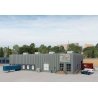 Build some new business for your N Scale railroad with the Cornerstone(R) Modern Grocery Warehouse kit. With its authentic ′tip-up′ style concrete construction, it′s perfect for modern industrial parks from the 1970s to the present. Features of this detailed strucure kit include: Detailed ′tip-up′ structure One-piece ′corrugated-style′ walls with exterior splines Use for any type of large industry Easily customized, or build bigger by combining kits, each sold separately Pull-through rail car end walls Correct height truck and railcar loading docks w/weather seals Industrial electric meters and pad-mounted transformer Four roof-mounted air conditioners Separate doors, windows, entry ramp and stairways Printed signs Molded in five colors with clear acetate