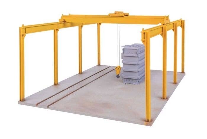 The Walthers Cornerstone HO Scale Transformer Factory kit is based on a typical 1970s-and-later factory that builds transformers. Electrical transformers of all sizes are used by power companies, at heavy industries and at any other business or industry that requires plenty of electrical power. This kit features a tall metal structure with truck dock and railcar doors, plus a roof-mounted cooling system a brick office building, a large overhead crane for loading and unloading, a transformer load (perfect for WalthersMainline depressed-center flatcars, sold separately) an electrical substation and chain-link fencing for the substation. This versatile kit makes a great addition to contemporary layouts as-is, but you may decide to use it as a metal fabrication business, steel coil pickling operation or as part of a larger industrial complex. The Transformer Factory features: Roof-mounted cooling system Large overhead crane for loading and unloading Molded in six colors Transformer load included Thread, nylon tulle, iron wire and cast metal hook included Great destination for WalthersMainline depressed-center and other heavy-duty flatcars (sold separately) Structures in the Transformer Factory kit measure: Factory and Crane: 23-15/16 x 9-1/3 x 6-1/16′ 60.8 x 23.7 x 15.4cm Office: 4-3/32 x 5-29/32 x 2-9/32′ 10.4 x 15.0 x 5.8cm Transformer: 5-1/32 x 3-13/16 x 2-13/16′ 12.8 x 9.7 x 7.1cm The Transformer Factory is one of many Cornerstone HO Scale industrial and related structure kits. Models in photos are shown assembled, painted and weathered by modeler.