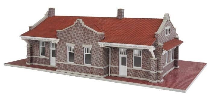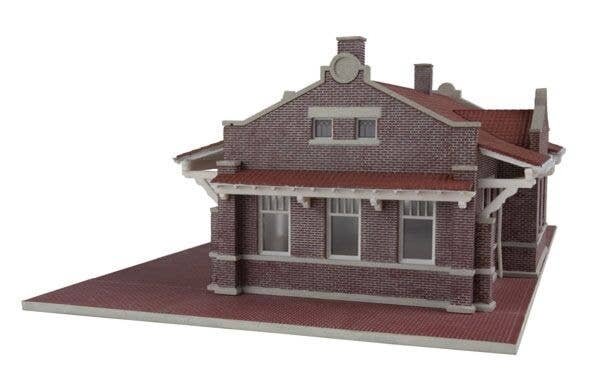 The Walthers Cornerstone HO Scale Brick Mission-Style Santa Fe Depot is based on a standard Santa Fe design used across the railroad. This style of brick train station was typically used for larger towns that were a county seat. Depending on the location a matching brick freight station (easily modeled with kit 933-4056, sold separately) was often built as an add-on to the depot or nearby as a freestanding structure. While the depot was a Santa Fe design similarly styled stations were used on several railroads. This easy-to-build kit includes the realistic brick structure, window glazing featuring unique detailing in the operator′s bay, wood trim, downspouts, a brick platform and realistic printed signs. Many of these structures still stand and many have been repurposed for other uses, so the Brick Mission-Style Santa Fe Depot will look great on any layout set between the 1930s and the present. Use the Brick Mission-Style Santa Fe Depot and other Cornerstone HO Scale railroad buildings to add realism to your layout. Santa Fe′s standard county seat depot used systemwide Use alone or combine with Brick Freight Station (933-4056, sold separately) Great station for smaller cities and towns Detailed brickwork, separate windows and doors Brick platform Easy-to-build plastic kit Molded in three colors and clear glazing realistic printed signs The finished Brick Mission-Style Santa Fe Depot measures: 11-5/16 x 6-7/16 x 3-3/4′ 28.7 x 16.3 x 9.5cm