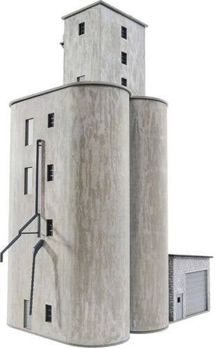 Grain elevators come in all shapes and sizes and the Walthers Cornerstone Prairie Co-Op Elevator kit will add variety to your grain handling scenes. Based on small-town producer elevators small four-silo structures can often be seen standing tall next to their wooden predecessors or related feed mills. Prairie Co-Op Elevator receives grain by truck and ships it out in covered hoppers or, in the late steam and classic diesel era, in grain-door boxcars. This kit includes the silos and headhouse, unloading shed, truck scales and various details to add realism to your layout′s grain siding. Classic small town terminal elevator Typical of concrete elevators in use from 1915 to today Used with all types of grain Square design with four silos Off-center head house Cement block unloading shed Cement block office with truck scale Loading spouts for boxcars and covered hoppers Separate dust collector, vents and sampling arm Molded in white, light gray and clear plastic Measures Elevator & Unloading Shed: 5-1/8 x 7-1/4 x 12′ 13 x 18.4 x 30.4cm Office: 4-3/8 x 3-1/2 x 2-1/4′ 11.1 x 8.8 x 5.7cm Detail Your Elevator with these Figures: Modern Grain Elevator Workers