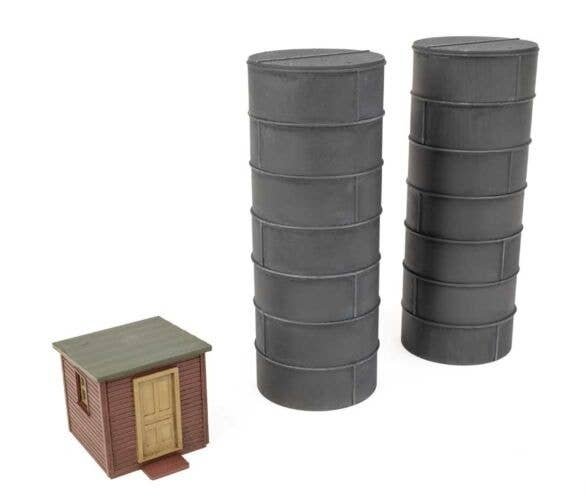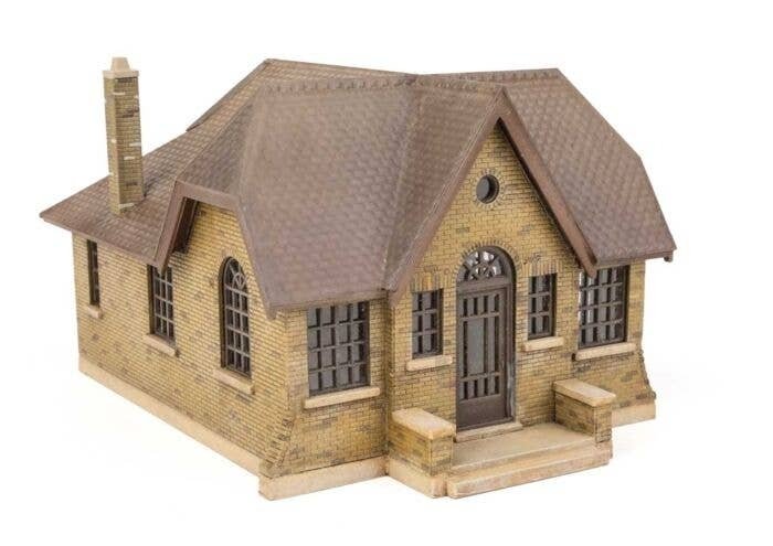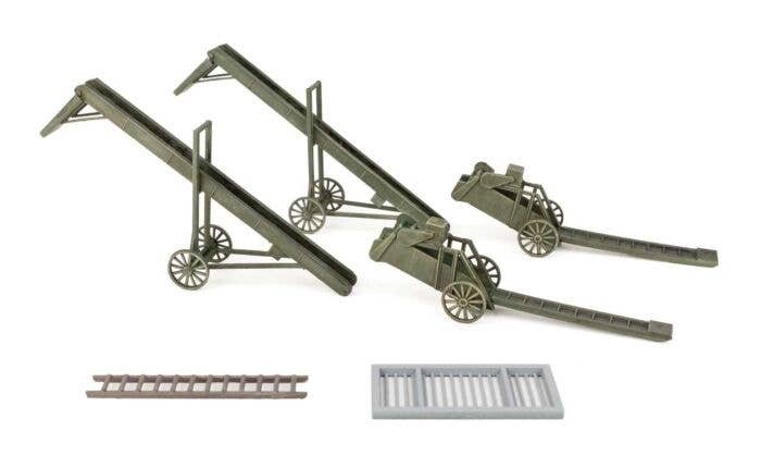 The prototypes for coal and oil dealers like the Walthers Cornerstone HO Scale Vintage Coal Dealer were well known to everyone in town. Shoehorned alongside mainlines and sidings, these businesses sold coal for home heating by the bagful or the ton and delivered to your house. Commercial accounts like small factories and stores were also serviced. As oil furnaces became common, many dealers expanded their line to include home heating oil too. Whether in a big city scene or a quiet country town, this kit looks great next to the tracks of your HO Scale railroad. And like the prototypes, the buildings are easily arranged to fit in odd-shaped spaces. Typical of facilities commonly seen in the US from the 1920s to the 1960s, this Vintage Coal Dealer can be built as a free-standing business. This is a great location for spotting those hoppers and tank cars. The Vintage Coal Dealer kit includes: Brick office building Concrete coal bunker with between-the-rails unloading grate Two coal conveyors Vertical steel fuel tanks with pump house Detailed trestle with supports, abutment, railing and walkway with optional bulkheads to build below-track storage bins Molded approach ramp for coal trestle. Flex-track (not included) suggested for coal trestle rail Printed interior sign sheet and decals Dimensions: Office: 4-7/16 x 3-9/16 x 2-17/32 11.27 x 9.05 x 6.43cm Coal Bunker: 8-7/8 x 3-1/2 x 7-3/8 22.1 x 8.7 x 10.9cm Oil Pump House: 1-1/4 x 1 x 1-3/8 3.2 x 2.5 x 3.5cm Oil Tanks: 1-5/16 x 1-5/16 x 4-3/16 3.3 x 3.3 x 10.64cm Coal Trestle: 24-1/2 x 4-3/8 x 1-3/4 62.3 x 11.1 x 4.4cm Fencing: 30′ 76.2cm of wooden fencing See a selection of Cornerstone trackside businesses here. Shown assembled, painted and weathered by modeler.