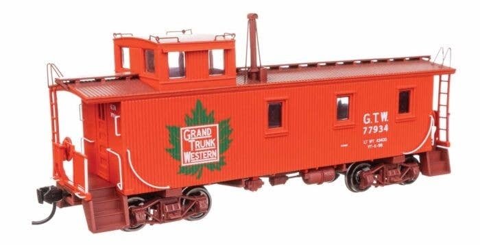 This classic Grand Trunk Western style caboose follows an authentic design based on cars first built in the 1920s with wood bodies and steel underframes and later updated with AB brake equipment. These cars were in service from the 1920s through the 1970s. Similar designs served on railroads across the country and this car is available in several road names. The fully assembled, railroad-ready model features: Complete interior detail Factory-installed running board, grab irons, brake wheel, smoke jack and other detail parts Correct leaf spring arch-bar trucks Ultra-smooth rolling metal axles and 33′ wheelsets Proto MAX(TM) metal knuckle couplers Please Note: As the wheelbase and placement of the trucks on these cars matches the prototype, a minimum radius of 24′ is recommended for operation.