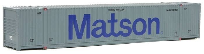 53′ Singamas Corrugated-Side Container - Ready to Run -- Matson (gray, blue), HO, Walthers SceneMaster 8516