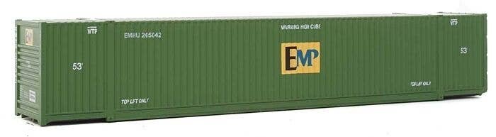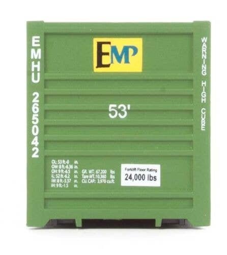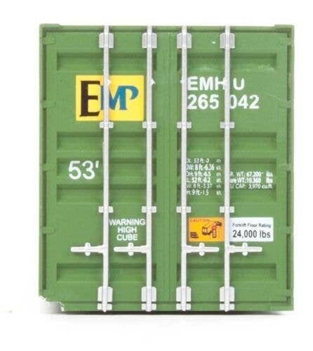 53′ Singamas Corrugated-Side Container - Assembled -- EMP (green, blue, yellow), HO, Walthers SceneMaster 8530