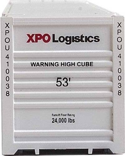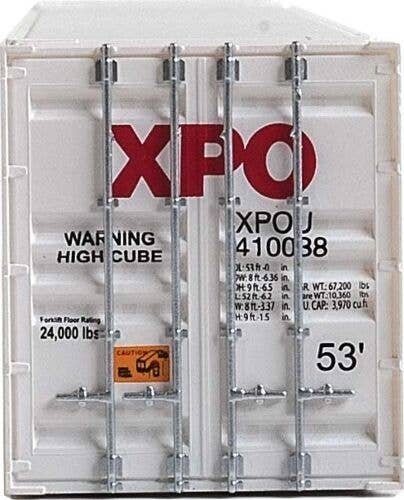 53′ Singamas Corrugated-Side Container - Assembled -- XPO Logistics (white, black, red), HO, Walthers SceneMaster 8531