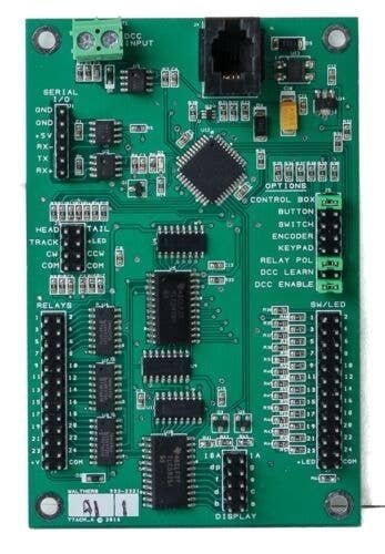 The Walthers Cornerstone Turntable Advanced Control Module makes it possible to operate your Motorized Turntable using DCC, serial UART, keypad or switch contacts. For DCC applications this circuit will function as a stationary decoder with no CV or programming required. The Turntable Advanced Control Module includes the circuit, Connection cable and complete instructions. Adds DCC, serial UART, keypad and switch contact input modes including: DCC control using stationary decoder protocols Numeric Keypad Button per track Rotary selector switch Control box emulation Serial Rx/Tx UART port Digital outputs for remote dual digit display and controlling track power relays to selectively power service tracks automatically Measures: 2-3/4′ (70mm) x 4-3/16′ (107mm) Please Note: This unit is designed for use only with the following Motorized Turntables, each sold separately: HO Scale 90′ 933-2860 HO Scale 110′ 933-2851 HO Scale 130′ 933-2859 N Scale 130′ 933-2618 For more information and accessories check out all of the Cornerstone Motorized Turntables.