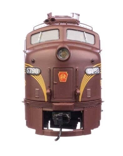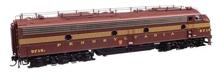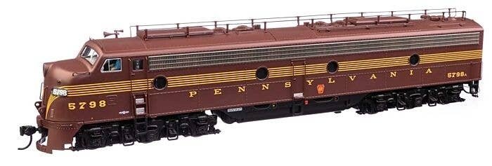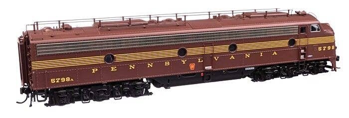 Pennsylvania′s signature passenger diesels, 74 EMD E8A (EP-22) units arrived from 1949 to 1951 for service with the Blue Ribbon Fleet, where they lead such trains as The General, The Broadway Limited and many more. A must-have for your Pennsylvania roster, these layout-ready WalthersProto replicas feature: One-time run of these unit numbers - order now, limited quantity available Road-specific details Both units powered 21-pin DCC plug Heavy die cast metal underframe Five-pole, skew-wound, high-torque high-efficiency can motor Helical gears for smooth, ultra-quiet running Correct RP-25 metal wheels Proto MAX(TM) metal knuckle couplers Prototype-specific features on this WalthersProto model include: NEW - Brass Leslie 3SJ air horn NEW - Revised train phone antenna NEW - Working Pyle-National backup light NEW - Rear frame & door w/round window NEW - PRR-style lifting eyes for doorframe Flush number boards Full side skirts Passenger pilot w/doors 4-hose MU set at left and right Single upper sealed-beam headlight Photo-etched Farr E8-style grilles Winterization hatches w/levers Dual steam generators EMD round exhaust stacks Roller bearing and square journal sideframes Speed recorder
