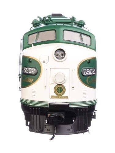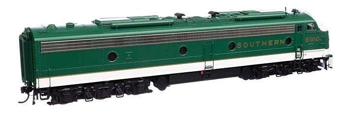 Power your HO railroad′s flagship streamliners with these superb replicas of EMD′s famed E8 and E9 diesels. Introduced in 1948 with the new 567B prime mover, production contiued until 1954 when the virtually identical E9 was introduced with the more powerful 567C prime mover. Powerful, reliable and economical, EMD E units handled premiere long-distance trains for decades, with many ending their long careers in commuter service and ocassionally handling fast freight trains. Fully assembled and ready for service, features include: One time run of these roadnumbers, order now - limited quantity available! Available with LokSound 5 for DCC or DC layouts Road- and era-specific details Both units powered - matching individual A units available separately Rugged and reliable WalthersProto drive 21-pin DCC plug Formed wire grab irons and handrails Photo-etched lift rings/li Cab interior w/seats and figures All-wheel drive and electrical pickup Constant and directional LED lights Correct size RP-25 metal wheels Proto MAX(TM) metal knuckle couplers Road-specific features of this WalthersProto replica include: Nathan five-chime (all forward) air horn Single horizontal sealed-beam headlight Working backup light Flush number boards Removed skirts Freight pilot Southern-style MU bracket 4-hose MU set at left and right Photo-etched E8A-style Farr air grilles Dynamic brake with 48′ fan Winterization hatches w/levers Single offset steam generator Rooftop air reservoirs w/piping Round spark arrestors Rectangular air vent Roller bearing sideframes Wheel slip hubs Speed recorder Southern-style left and right water tanks