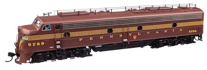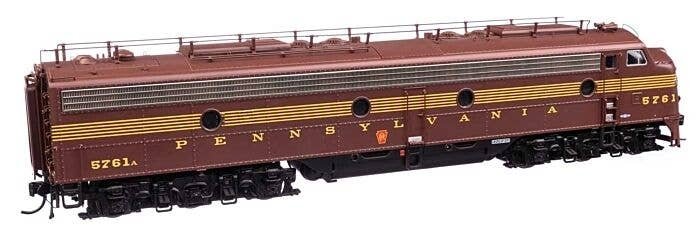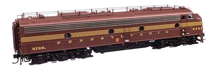 Pennsylvania′s signature passenger diesels, 74 EMD E8A (EP-22) units arrived from 1949 to 1951 for service with the Blue Ribbon Fleet, where they lead such trains as The General, The Broadway Limited and many more. A must-have for your Pennsylvania roster, these layout-ready WalthersProto replicas feature: One-time run of these unit numbers - order now, limited quantity available Road-specific details Both units powered 21-pin DCC plug Heavy die cast metal underframe Five-pole, skew-wound, high-torque high-efficiency can motor Helical gears for smooth, ultra-quiet running Correct RP-25 metal wheels Proto MAX(TM) metal knuckle couplers Prototype-specific features on this WalthersProto model include: NEW - Brass Leslie 3SJ air horn NEW - Revised train phone antenna NEW - Working Pyle-National backup light NEW - Rear frame & door w/round window NEW - PRR-style lifting eyes for doorframe Flush number boards Full side skirts Passenger pilot w/doors 4-hose MU set at left and right Single upper sealed-beam headlight Photo-etched Farr E8-style grilles Winterization hatches w/levers Dual steam generators EMD round exhaust stacks Roller bearing and square journal sideframes Speed recorder