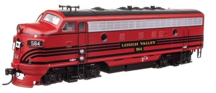 Add classic diesel power to your HO roster in minutes with WalthersMainline F7 diesels! Introduced in 1949 as railroads began dieselizing with a vengeance, they were equally at home in freight or passenger service. Delivered in a rainbow of color schemes for nearly every railroad in America, many served into the 1980s. Ready to take on any assignment on your HO railroad, features of WalthersMainline F7 locomotives include: One time run of these road numbers, order now - limited quantity available! Prototypes in freight and passenger service from 1949 to the 1980s Powered A and B units Colorful paint and lettering schemes Factory-installed handrails Available with ESU Sound for DCC and DC layouts featuring: - 4 function outputs with brightness control by CV - Fully DCC compatible - 14, 28, 128 speed steps - Dual mode DC and DCC - 4 air horns changeable by CVs - 2 bells changeable by CVs - Full 8-notch prime mover sounds - Compressor - Dynamic brake - Multiple realistic lighting effects Same powerful drive as WalthersProto(R) locos featuring: - Five-pole skew-wound motor - 14:1 gear ratio - Helical-cut gears for quiet, easy multiple unit operation - All-wheel drive and electrical pickup - Dual machined brass flywheels - Heavy die cast metal chassis LED Mars Light (upper) and headlight (lower) on A Unit 21-pin plug on Standard DC models for easy DCC conversion Correct size RP-25 metal wheels Proto MAX(TM) metal knuckle couplers PLEASE NOTE: When operating Walthers-branded DCC-equipped locomotives in DC mode, do not use power packs that exceed an 18V rating. This includes MRC 1300-series power packs, which have known issues with our decoders. Alternate horns and bell sounds can be programmed on the sound decoder using these CVs: Horns: CV163 0 - Leslie A-200 CV163 1 - Wabco Single Chime CV163 2 - Nathan M3 CV163 3 - Leslie S3L Bells: CV164 0 - Bronze Bell (default) CV164 1 - Steel Bell Additional information on DCC functions: ESU CV List ESU Function Mapping ESU Function Output