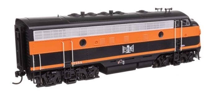 These WalthersMainline F7s are perfect power for those HO fantrips, shipper′s specials and other special events you have planned! This run brings you classic A units in five later schemes, all based on the heritage and executive units rebuilt for public relations duties by several lines from the 1980s on. Features of these layout-ready models include: Limited edition - one time run of these roadnumbers! Colorful paint and lettering schemes Factory-installed handrails Available with ESU Sound for DCC and DC layouts featuring: 4 function outputs with brightness control by CV Fully DCC compatible 14, 28, 128 speed steps Dual mode DC and DCC 4 air horns changeable by CVs 2 bells changeable by CVs Full 8-notch prime mover sounds Compressor Dynamic brake Multiple realistic lighting effects Same powerful drive as WalthersProto(R) locos featuring: Five-pole skew-wound motor 14:1 gear ratio Helical-cut gears for quiet, easy multiple unit operation All-wheel drive and electrical pickup Dual machined brass flywheels Heavy die cast metal chassis Constant and directional lights 21-pin plug on Standard DC models for easy DCC conversion RP-25 metal wheels Proto MAX(TM) metal knuckle couplers PLEASE NOTE: When operating Walthers-branded DCC-equipped locomotives in DC mode, do not use power packs that exceed an 18V rating. This includes MRC 1300-series power packs, which have known issues with our decoders. Alternate horns and bell sounds can be programmed on the sound decoder using these CVs: Horns: CV163 0 - Leslie A-200 CV163 1 - Wabco Single Chime CV163 2 - Nathan M3 CV163 3 - Leslie S3L Bells: CV164 0 - Bronze Bell (default) CV164 1 - Steel Bell Additional information on DCC functions: ESU CV List ESU Function Mapping ESU Function Output