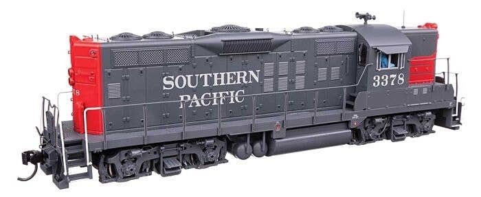 A signature diesel for your HO railroad, the WalthersProto GP9 Phase II with High Hood is a real workhorse! With revised tooling and road-specific details, the models are based on prototypes built from 1955 to 1957 (known to modelers and railfans as the ′phase two′ version), and many are still in service today. Features of the models include: Limited-edition - one time run of these roadnumbers Based on units in service from 1955 to the present Improved hood contours and Phase II detail Road-specific details Wire grab irons and lift rings 21mtc connector Warm white LED constant and directional headlights 14:1 helical gears for ultra-quiet and smooth running 5-pole, skew-wound, high-torque, high-efficiency can motor Easy multiple-unit operation Superb paint and lettering Heavy die-cast metal underframe Proto MAX(TM) metal knuckle couplers Southern Pacific(TM) (Rebuild) Short hood forward operation Dynamic brake long hood with 36′ radiator fans, blanked SP 5-light package Short hood with SP 5-light package Modified skirt with single fuel filler, drop step, MU holder, and rebuilt equipment box doors Early Pyle dual sealed-beam headlights Whip style antenna Brass Nathan P3 air horn Medium-height MU stands Modernized uncoupling lever Etched-metal cab sunshades 1600-gallon fuel tank Separately applied windshield wipers Ratcheting lever handbrake