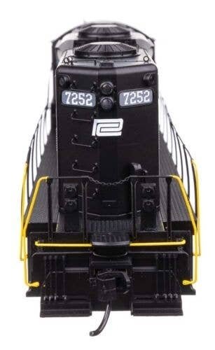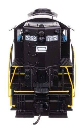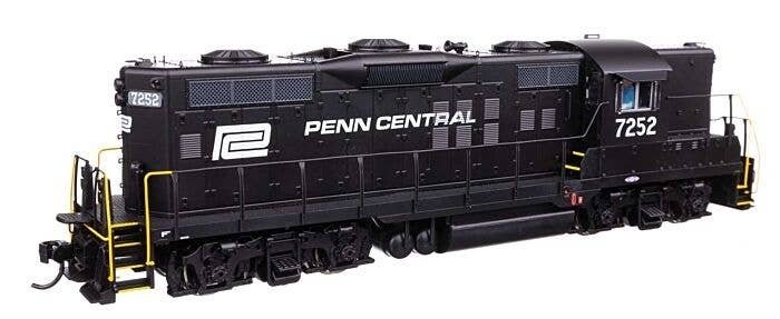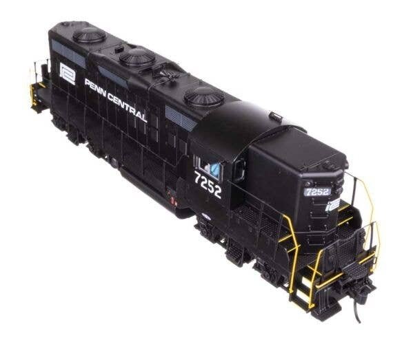 A signature diesel for your HO railroad, the WalthersProto GP9 Phase II with High Hood is a real workhorse! With revised tooling and road-specific details, the models are based on prototypes built from 1955 to 1957 (known to modelers and railfans as the ′phase two′ version), and many are still in service today. Features of the models include: Limited-edition - one time run of these roadnumbers Based on units in service from 1955 to the present Improved hood contours and Phase II detail Road-specific details Wire grab irons and lift rings 21mtc connector Warm white LED constant and directional headlights 14:1 helical gears for ultra-quiet and smooth running 5-pole, skew-wound, high-torque, high-efficiency can motor Easy multiple-unit operation Superb paint and lettering Heavy die-cast metal underframe Proto MAX(TM) metal knuckle couplers Penn Central Long hood forward operation Dynamic brake long hood with 48′ radiator fans Simplified skirt with single fuel filler, drop step, MU holder, footboards Early Pyle dual sealed-beam headlights Brass Leslie S3 air horn Sinclair antenna Ratcheting lever handbrake 1600-gallon fuel tank Separately applied windshield wipers Etched-metal cab sunshades Tall MU stands