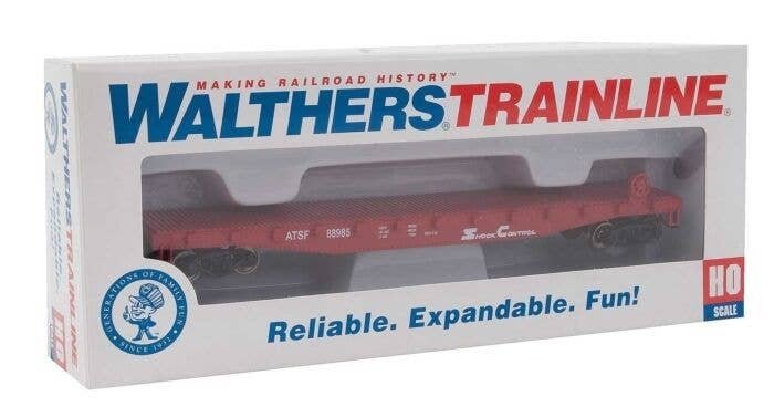 This Walthers Trainline HO Scale Flatcar is great for adding to any freight train on your layout or train set. Trainline freight cars feature RP-25 metal wheels for superior performance on all kinds of track including smaller scale-sized Code 70 and larger rail. With their added weight, body-mounted knuckle couplers, and wheel tread matched to National Model Railroad Association standards, wheels on Trainline rolling stock are compatible with almost all North American HO model railroads and can be used as you expand your railroad. Other features of this Flatcar include molded details that stand up to handling during operation and realistic paint schemes for good looks. The Flatcar is part of the large line of Trainline cars and locomotives. Fully assembled, ready to run Colorful paint and lettering schemes Fully assembled, ready to run Use with any HO Scale train set Body-mounted magnetic knuckle couplers RP-25 metal wheels