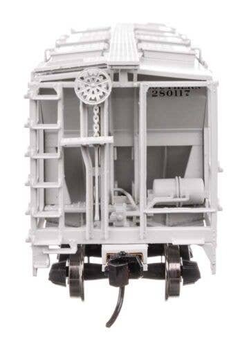 The WalthersMainline HO Scale ACF Design 1,958 Cu.Ft. 2-Bay Covered Hopper is ideal for your late steam and early-diesel-era layout or train consist! Modeled with the distinctive ′W′ shape of its prototype, a pioneering ACF 2-bay covered hopper is based on a car first developed by American Car & Foundry in the late 1930s. The car soon became a standardized design that was copied by other manufacturers during the 1940s and 1950s. Thousands of these hoppers hauled cement, sand, powdered chemicals and other dry bulk materials into the 1970s. Accurately sized and detailed, the WalthersMainline ACF 1,958 Cu.Ft. 2-Bay Covered Hopper features: Thin profile roofwalk with see-through tread, stirrups, end ladders and platforms for a more ′scale′ appearance Factory applied separate discharge gates, vibrator brackets Applied separate Ajax brake wheel and air reservoir 33′ metal wheels Proto MAX(TM) metal knuckle couplers for reliable operation The ACF Design 1,958 Cu.Ft. 2-Bay Covered Hopper is one of many WalthersMainline HO Scale hopper cars.