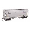 The Atlas N Scale PD5000 5-Bay Pressure Differential Covered Hopper is based on the original North American Car Company (NACC) design for a 5150 cu ft PD covered hopper, which was later manufactured as a 5125 cubic foot model by Trinity Industries. The Pressure Differential, or PD covered hopper was designed as a competitor to the General American Transportation Airslide hopper in the early 1970s to transport light, powdered materials. Unlike the Airslide, which forced pressurized air up through a fabric liner to help fluidize the cargo, the PS series of hoppers applied both a positive pressure of about 15 lbs. psi above the outlets as well as a vacuum at the outlet to help draw the cargo from the car. This design was well suited to products with very small particle size, such as talc, clay, plaster, and cement which would readily foul the fabric liner in an Airslide design. In addition, since the upper hatches did not need to be opened during unloading, the PD hopper was also ideal for transporting goods where contamination by outside air, dirt, or moisture could affect the load. These cars were mostly provided as lease cars, and as such, carried many colorful schemes and product logos during their lifetimes, however several major railroads such as Norfolk Southern purchased fleets as well. This N Scale car features and etched-metal roofwalk, finely molded end cage, appropriate free-rolling trucks and AccuMate(R) magnetic knuckle couplers. The PD5000 5-Bay Covered Hopper is one of many Atlas N Scale hoppers.
