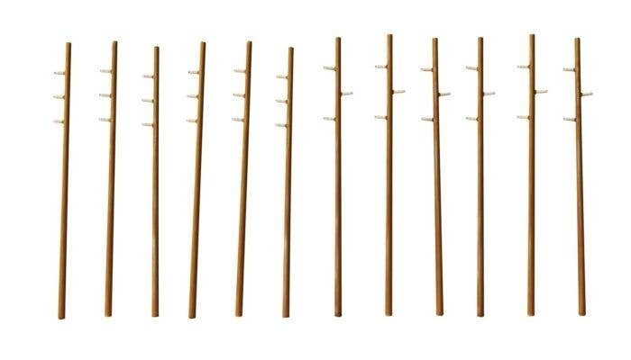 Upgrade your HO power grid with the Cornerstone Intermediate Height ′Wood′ Utility Poles kit. Based on protoypes that carry reduced voltage from substations to transformers serving customers, the kit features: New tooling! Must-have detail for modeling a modern power grid Prototypes support reduced voltage lines between substations and service transformers Parts to build 12 poles 36 separate insulators - can be drilled out to accept ′Wire′ (#933-3344, sold separately) Realistic wood grain texture and color Molded in brown and light gray Each pole measures 6-1/4′ 17.5cm 45 scale feet tall above surface mounting pin measures 3/8′ 10mm Model a complete power grid with these Cornerstone kits, including the Coal Conveyor with Transfer House (#933-4171), Modern High-Voltage Transmission Towers (#933-3343), Lakeshore Energy Power Plant (#933-4172), Substation (#933-4175), plus SceneMaster Utility Poles (#949-4120) and Utility Company Vehicles (#949-11636 series), each sold separately