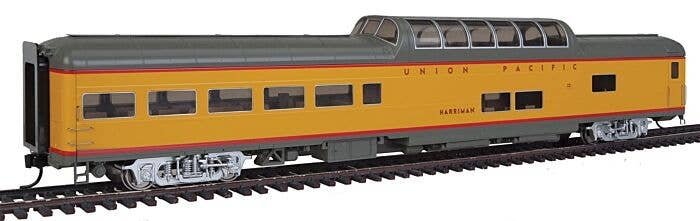 A key part of Union Pacific′s public relations programs, 48 historic passenger cars and three E9 diesels make up part of the famed Heritage Fleet. Many were originally purchased for the City Streamliners, and have been carefully restored and updated to full operating condition. Today, they′re finished in a modern Armour Yellow scheme, and the cars carry names of important cities, famous trains and key people in the railroad′s long history. In service, these rolling goodwill ambassadors travel system-wide and beyond, behind UP′s restored steam and diesel locos, to attend a wide range of public and special events every year. Early or Late lettering schemes as noted in two versions Factory-printed name with number decal for pre-1987 cars Factory-printed name and UPP number for post-1994 cars Factory-installed grab irons Prototypically accurate window tinting and gaskets as appropriate Modeler-installed extended drawbars for 22′ radius curves included Correct 36′ RP-25 metal wheelsets Proto MAX(TM) metal knuckle couplers PLEASE NOTE: As these cars are the correct prototype length and feature full underbody detail to match the prototypes, a minimum 24′ radius is recommended for operation. Built new in 1955 by American Car & Foundry, UP #9004 was set aside for special assignments in 1974. In 1987, the car was named ′Harriman′ in honor of Edward Harriman and his sons Averell and Roland, who all served as Directors of the company. From 1989 to 1990, the car was named ′Sun Valley.′