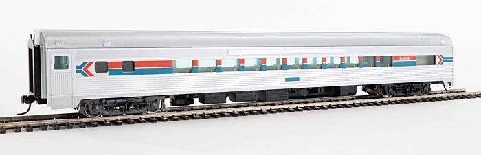 Add more seating on your classic streamliner quickly and easily with this WalthersMainline HO Scale 85′ Budd Small-Window Coach! Nicely detailed, affordably priced and built tough for years of dependable service, this car is based on fluted-side cars used my many North American railroads. 85′ Budd Small-Window Coaches are perfect for use with other WalthersMainline HO Scale streamlined passenger cars. Model passenger service in minutes at WalthersMainline prices! Based on streamlined cars used by many roads Eight authentic car types Operates on 18′ or larger radius curves Correct prototype 85′ length Tinted window glazing Fully assembled, ready for fun on your railroad Rugged construction for years of service Detailed body Full interior Correct 36′ turned metal RP-25 wheelsets Proto MAX(TM) metal knuckle couplers LED interior lights available separately Molded drill starter points for add-on wire grab irons (sold separately) Take your models to a new level of realism with these accessories and tools, available separately: LED Interior Lighting Kit Exterior Detailing Kit Walthers has the tools you need for a fast and easy installation too: Walthers Double Ended Pin Vise! Walthers Drill Bits! Officially licensed by Amtrak Amtrak is a registered service mark of the National Railroad Passenger Corporation