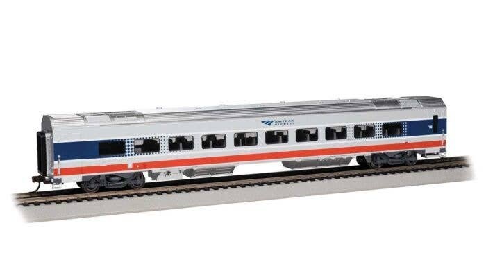 Siemens Venture series HO Scale passenger cars from Bachmann are based on the next generation of medium-distance passenger railcars for North America. Prototypes currently see use on Amtrak state-supported services in the Midwest U.S. and in California, while VIA Rail Canada has introduced the series on corridor services in eastern Canada. Venture Car models have been developed in collaboration with Siemens, using original design documentation to ensure prototypical accuracy. Coach, Business, and VIA Cab Car configurations are available. Features include highly detailed, painted bodies with precision graphics fully furnished and lighted interiors road-specific exterior configurations dual mode DCC-operated horn, bell, and brake sounds, as well as headlight, ditch light, and marker light functionality on the cab car magnetically operated E-Z Mate) Mark II couplers and blackened machined metal wheels with RP25 contours. Cars are designed for 22′ and larger radius curves. Siemens Venture Cars are part of the line of Bachmann HO Scale passenger cars and equipment.WARNING: This product can expose you to chemicals including Lead, which is known to the State of California to cause cancer and birth defects or other reproductive harm. For more information go to www.P65Warnings.ca.gov