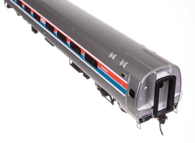 Featuring newly tooled, ultra free rolling trucks, WalthersProto HO Scale Amfleet Coaches are ready for your railroad′s passenger trains. For over 50 years prototype Amfleet cars have formed the backbone of Amtrak(R) intercity service. The cars were especially designed to handle the tunnels and other close clearances of lines in the eastern United States. Designated Amfleet I, the first group of Amfleet coaches entered service in 1975 with enough space for 84 passengers per car. In 1981 a second group of nearly identical cars, designated Amfleet II, entered service. Built especially for long-distance trains, Amfleet II coaches provided more spacious interiors and slightly larger windows for 59 passengers. Amfleet cars are available with factory printed numbers or user-applied car number decals in a variety of era-appropriate paint schemes. This car includes factory-installed interior LED lighting. Walthers Amfleet coaches feature: Accurately detailed in Amfleet I and Amfleet II versions Newly designed and tooled, ultra free rolling inside bearing trucks Correct 36′ scale diameter metal wheels Simulated stainless steel finish Paint color matched to Amtrak standards Factory printed car numbers Smoked ′glass′ windows with gaskets Accurately detailed interior with optional overhead LED interior lighting Factory installed grab irons Highly detailed underframe with center and cross bracing Minimum radius: 24′ PLEASE NOTE: As these cars are the correct prototype length and feature full underbody detail to match the prototypes, a minimum 24′ radius is recommended for operation. Build your favorite Amtrak train consists with the entire line of WalthersProto and WalthersMainline HO Scale equipment! Officially licensed by Amtrak