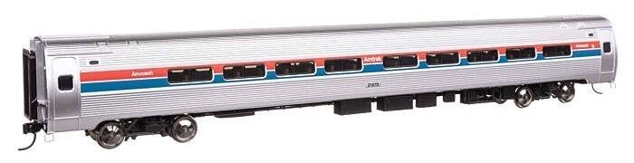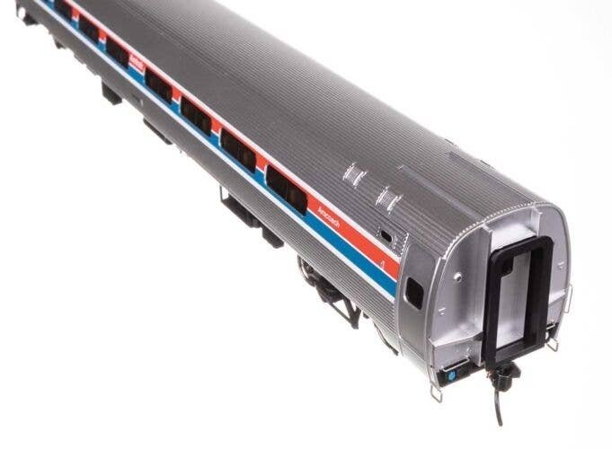 Featuring newly tooled, ultra free rolling trucks, WalthersProto HO Scale Amfleet Coaches are ready for your railroad′s passenger trains. For over 50 years prototype Amfleet cars have formed the backbone of Amtrak(R) intercity service. The cars were especially designed to handle the tunnels and other close clearances of lines in the eastern United States. Designated Amfleet I, the first group of Amfleet coaches entered service in 1975 with enough space for 84 passengers per car. In 1981 a second group of nearly identical cars, designated Amfleet II, entered service. Built especially for long-distance trains, Amfleet II coaches provided more spacious interiors and slightly larger windows for 59 passengers. Amfleet cars are available with factory printed numbers or user-applied car number decals in a variety of era-appropriate paint schemes. Walthers Amfleet coaches feature: Accurately detailed in Amfleet I and Amfleet II versions Newly designed and tooled, ultra free rolling inside bearing trucks Correct 36′ scale diameter metal wheels Simulated stainless steel finish Paint color matched to Amtrak standards Factory printed car numbers Smoked ′glass′ windows with gaskets Accurately detailed interior with optional overhead LED interior lighting Factory installed grab irons Highly detailed underframe with center and cross bracing Minimum radius: 24′ PLEASE NOTE: As these cars are the correct prototype length and feature full underbody detail to match the prototypes, a minimum 24′ radius is recommended for operation. Build your favorite Amtrak train consists with the entire line of WalthersProto and WalthersMainline HO Scale equipment! Officially licensed by Amtrak