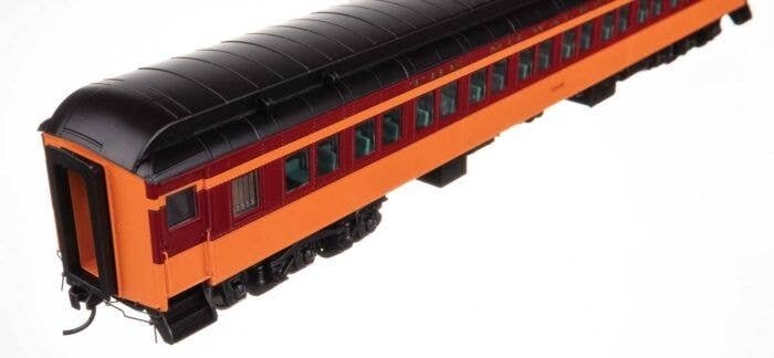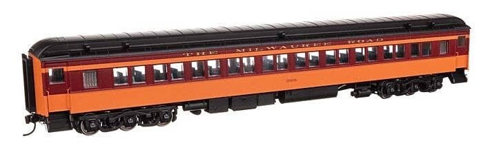 Built to last, prototypes for the WalthersProto 85′ Heavyweight Paired Window Coach hauled passengers for decades. Some were modernized and repainted while others were rebuilt for work train service. However you choose to run these cars, you can appreciate the highly detailed interior and underbody. The correct Pullman trucks with built-in electrical contacts, combined with constant intensity LED lighting make these cars a must-have for nighttime operations. Based on prototypes built by Pullman Some ran as-is for decades while others received colorful paint jobs to match lightweight equipment Many were later rebuilt for work train service Detailed interior with factory-equipped overhead LED lighting Sprung diaphragms Factory installed grab irons Highly detailed underbody with separate brake gear, steam traps, generator and more 36 scale inch RP-25 turned metal wheels and correct Pullman trucks All wheel electrical pickup for uninterrupted, constant intensity LED lighting Add life to your new cars with the #949-6034 SceneMaster Seated Coach Passenger set, sold separately PLEASE NOTE: As these cars are the correct prototype length and feature full underbody detail to match the prototypes, a minimum 24′ radius is recommended for operation.