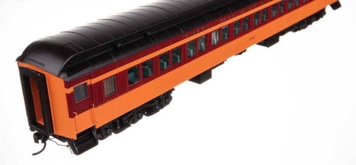 Built to last, prototypes for the WalthersProto 85′ Heavyweight Paired Window Coach hauled passengers for decades. Some were modernized and repainted while others were rebuilt for work train service. However you choose to run these cars, you can appreciate the highly detailed interior and underbody. The correct Pullman trucks with built-in electrical contacts, combined with constant intensity LED lighting make these cars a must-have for nighttime operations. Based on prototypes built by Pullman Some ran as-is for decades while others received colorful paint jobs to match lightweight equipment Many were later rebuilt for work train service Detailed interior with factory-equipped overhead LED lighting Sprung diaphragms Factory installed grab irons Highly detailed underbody with separate brake gear, steam traps, generator and more 36 scale inch RP-25 turned metal wheels and correct Pullman trucks All wheel electrical pickup for uninterrupted, constant intensity LED lighting Add life to your new cars with the #949-6034 SceneMaster Seated Coach Passenger set, sold separately PLEASE NOTE: As these cars are the correct prototype length and feature full underbody detail to match the prototypes, a minimum 24′ radius is recommended for operation.