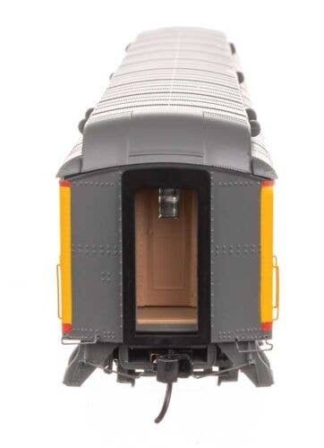 Built to last, prototypes for the WalthersProto 85′ Heavyweight Paired Window Coach hauled passengers for decades. Some were modernized and repainted while others were rebuilt for work train service. However you choose to run these cars, you can appreciate the highly detailed interior and underbody. The correct Pullman trucks with built-in electrical contacts, combined with constant intensity LED lighting make these cars a must-have for nighttime operations. Based on prototypes built by Pullman Some ran as-is for decades while others received colorful paint jobs to match lightweight equipment Many were later rebuilt for work train service Detailed interior with factory-equipped overhead LED lighting Sprung diaphragms Factory installed grab irons Highly detailed underbody with separate brake gear, steam traps, generator and more 36 scale inch RP-25 turned metal wheels and correct Pullman trucks All wheel electrical pickup for uninterrupted, constant intensity LED lighting Add life to your new cars with the #949-6034 SceneMaster Seated Coach Passenger set, sold separately PLEASE NOTE: As these cars are the correct prototype length and feature full underbody detail to match the prototypes, a minimum 24′ radius is recommended for operation.