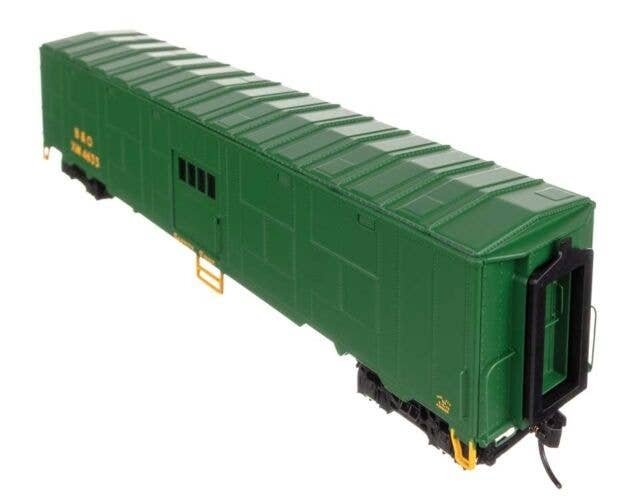 WalthersProto HO Scale Express Boxcars (Converted Troop Cars) is based on widely used conversions. During World War II, when American Railroads passenger car fleets were stretched to the limits, Pullman Standard and American Car & Foundry stepped up and filled out the nations fleet. Essentially 50′ boxcars on passenger-style trucks, the cars featured simplified interiors and were used by the military to move troops across the country. After the war, there was no longer a need for these spartan passenger cars and they were sold to several railroads at bargain prices. Most of the cars had their interiors removed and windows plated over for service as Express Boxcars. Many of these cars could be found on the headend of passenger trains into the 1960s. The WalthersProto models are available in three prototypical body styles (NYC, CB&Q and C&O versions) that include the following features: Accurately modeled body with rivet seams, diaphragms and other details to match each prototype Authentically detailed, high-speed passenger-style trucks Correct RP-25 metal wheels Proto MAX(TM) metal knuckle couplers Factory-installed separate grab irons and steps Factory installed separate, non-opening side doors with or without windows as appropriate Minimum Radius: 18′ (22′ or greater recommended)
