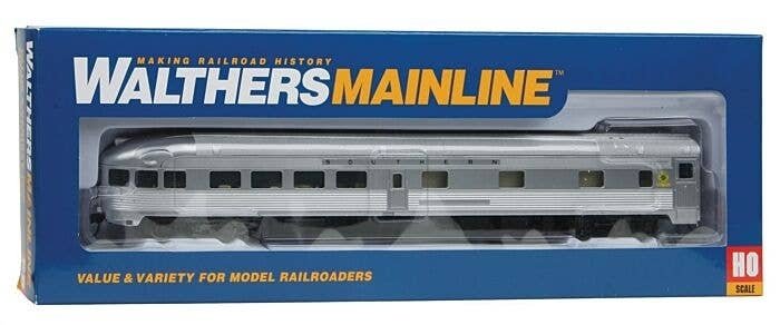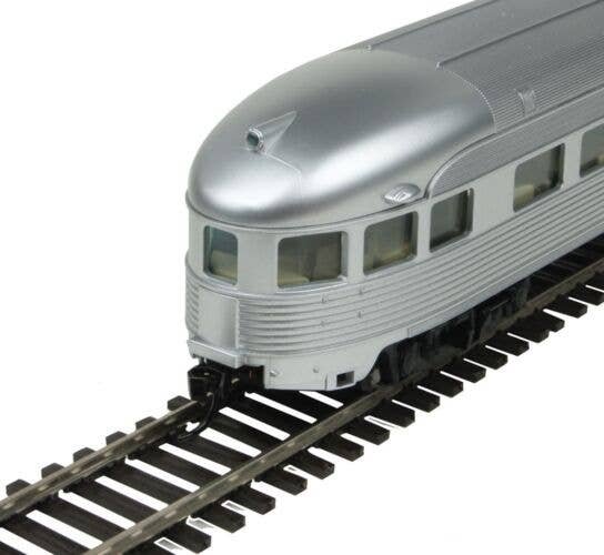 Add luxury lounge space on your classic streamliner quickly and easily with this WalthersMainline HO Scale 85′ Budd Observation! A common car on many trains, the trademark ′boat tail′ end of the car offered riders a receding view of the rails through wrap-around windows as they relaxed with their favorite beverages or snacks. Nicely detailed, affordably priced and built tough for years of dependable service, this car is based on fluted-side cars used my many North American railroads. 85′ Budd Observations are perfect for use with other WalthersMainline HO Scale streamlined passenger cars. Model passenger service in minutes Based on streamlined cars used by many roads Eight authentic car types Operates on 18′ or larger radius curves Correct prototype 85′ length Tinted window glazing Fully assembled, ready for fun on your railroad Rugged construction for years of service Detailed body Full interior Correct 36′ turned metal RP-25 wheelsets Proto MAX(TM) metal knuckle couplers LED interior lights available separately Molded drill starter points for add-on wire grab irons (sold separately) Take your models to a new level of realism with these accessories and tools, available separately: LED Interior Lighting Kit Exterior Detailing Kit Walthers has the tools you need for a fast and easy installation too: Walthers Double Ended Pin Vise! Walthers Drill Bits!