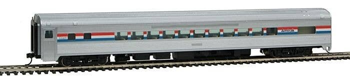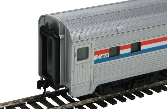 Add more seating on your classic streamliner quickly and easily with this WalthersMainline HO Scale 85′ Budd Small-Window Coach! Nicely detailed, affordably priced and built tough for years of dependable service, this car is based on fluted-side cars used my many North American railroads. 85′ Budd Small-Window Coaches are perfect for use with other WalthersMainline HO Scale streamlined passenger cars. Model passenger service in minutes at WalthersMainline prices! Based on streamlined cars used by many roads Eight authentic car types Operates on 18′ or larger radius curves Correct prototype 85′ length Tinted window glazing Fully assembled, ready for fun on your railroad Rugged construction for years of service Detailed body Full interior Correct 36′ turned metal RP-25 wheelsets Proto MAX(TM) metal knuckle couplers LED interior lights available separately Molded drill starter points for add-on wire grab irons (sold separately) Take your models to a new level of realism with these accessories and tools, available separately: LED Interior Lighting Kit Exterior Detailing Kit Walthers has the tools you need for a fast and easy installation too: Walthers Double Ended Pin Vise! Walthers Drill Bits! Officially licensed by Amtrak Amtrak is a registered service mark of the National Railroad Passenger Corporation