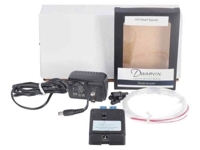 The Dwarvin HO Scale Turnout Signals for 2 Wire Snap Bipolar Switch Machines Kit for system is designed to integrate with snap twin coil two-wire bipolar solenoid-style switch machines Kato, Rokuhan, Rapido Trains and any others using two-wire snap machines. Kits are available with or without three dwarf signals. The system is available with or without signals and power supply. A unique feature designed into this system is that it remembers the direction of the turnout from the last time it was used, even when power has been interrupted. The system can be used with either AC or DC power, directly from the turnout power. You can also cascade each controller so that you only need to power one and all are powered. This has a unique advantage when using the product in a yard ladder. Only one power supply needs to be used as all the other controllers can get their power from that first one, thereby reducing complexity. The Turnout Signals for 2 Wire Snap Bipolar Switch Machines kit is one of many fiber optic lighting and signaling products from Dwarvin.