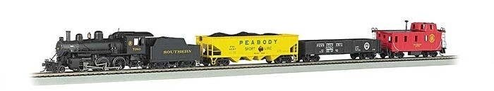 A whistle echoes through the walls of a deep valley as you hear the unmistakable chuffing of a classic steam locomotive approaching. The Echo Valley Express is steaming ahead with carloads of coal to fuel America′s hungry furnaces. It features a DCC sound-equipped Baldwin 2-6-0 with a steam sound package that includes authentic prototypical chuff, short and long whistles, bell, air compressor, and blower-all in polyphonic 16-bit sound that you can control with our E-Z Command(R) digital control system. This fun set includes a 2-6-0 locomotive, three cars, a 56 x 38′ 142.2 x 96.5cm snap-fit E-Z Track(R) oval, E-Z Command control center and complete instructions.WARNING: This product can expose you to chemicals including Lead, which is known to the State of California to cause cancer and birth defects or other reproductive harm. For more information go to www.P65Warnings.ca.gov