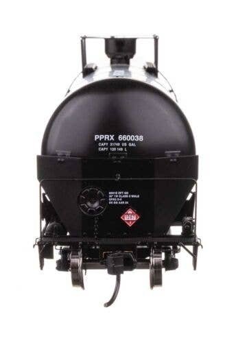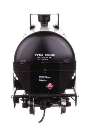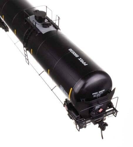 Expand oil train operations on your contemporary HO Scale layout with these WalthersProto models of 55′ Trinity Modified 30,145-gallon Tank Cars featuring: One time run of these roadnumbers, order now - limited quantity available! Based on cars updated with reinforced ends, revised end platforms and multi-valve housing to comply with Federal Railroad Administration (FRA) mandates Now in use for all types of traffic including ethanol, gasoline, crude oil and more Photo-etched metal end shields See-through etched-metal walkways and end platforms Authentic placards for crude oil and other loads Factory-installed grab irons Prototypical modern end rails Highly detailed underbody with separate brake cylinder, brake pipe and rigging Ultra-smooth rolling metal axles and RP-25 36′ wheelsets Proto MAX(TM) metal knuckle couplers