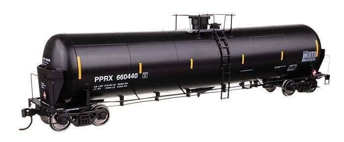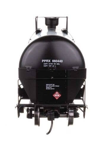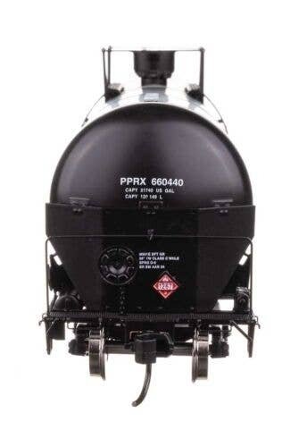 Expand oil train operations on your contemporary HO Scale layout with these WalthersProto models of 55′ Trinity Modified 30,145-gallon Tank Cars featuring: One time run of these roadnumbers, order now - limited quantity available! Based on cars updated with reinforced ends, revised end platforms and multi-valve housing to comply with Federal Railroad Administration (FRA) mandates Now in use for all types of traffic including ethanol, gasoline, crude oil and more Photo-etched metal end shields See-through etched-metal walkways and end platforms Authentic placards for crude oil and other loads Factory-installed grab irons Prototypical modern end rails Highly detailed underbody with separate brake cylinder, brake pipe and rigging Ultra-smooth rolling metal axles and RP-25 36′ wheelsets Proto MAX(TM) metal knuckle couplers