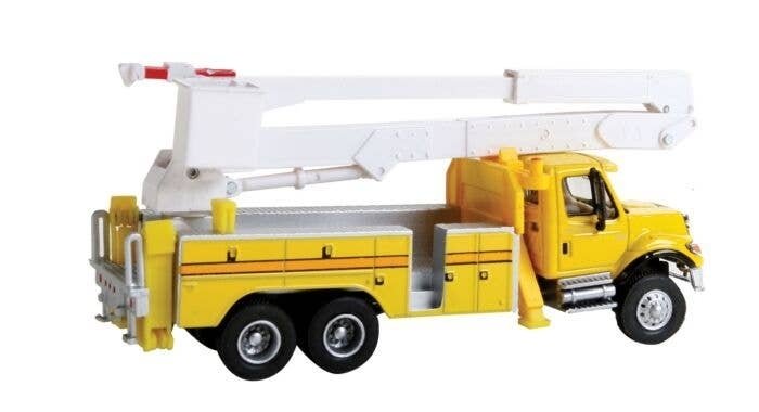 This Walthers SceneMaster HO Scale International 7600 Utility Truck with Bucket Lift is perfect for all kinds of construction and maintenance scenes on your modern-era layout. Also known as the WorkStar, this series of technologically sophisticated, heavy-duty trucks is powered by an 11-liter (390 horsepower) or 13-liter (475 horsepower) diesel engine, and can be built on a single- or dual-axle platform. The combination of power and versatility make it a favorite with railroad, construction, mining and utility companies. The International 7600 Utility Truck is part of the line of SceneMaster HO Scale trucks and construction vehicles. Licensed replica of popular International trucks Must-have for HO model railroads Perfect size for collectors Positionable parts on many models Fully assembled and painted Die-cast metal and plastic parts INTERNATIONAL(R) and other International Truck trademarks are licensed by International Truck Intellectual Property Company, LLC.