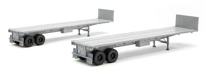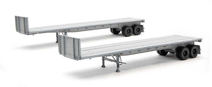 From the piggyback terminal to the loading dock, add color and variety to your HO vehicle fleet with 40′ Flatbed Trailer 2-Packs from SceneMaster! Features of the models include: Fits layouts from the 1960s to the present Detailed front board Wood grain detail on deck Finely detailed with nonworking taillights, placard, license plate, tool box, and rear bumper (ICC bar) Modeler-applied landing gear in up or down positions with hand crank in transport position Looks great in loading and unloading scenes or headed over the road behind a SceneMaster tractor, sold separately Available in three authentic colors and undecorated Detail highway scenes, loading docks, piggyback flats and more with the Flatbed Trailer 2-Packs from SceneMaster featuring: Two complete trailers included Based on typical 40′ flatbeds in use from the 1960s to the present Looks great in loading and unloading scenes or headed over the road behind a SceneMaster tractor, sold separately Detailed front board Wood grain detail on deck Modeler-applied landing gear in up and down positions with hand crank in transport position Finely detailed with taillights, placard, license plate, rear bumper (ICC bar) Available in three authentic colors and undecorated versions