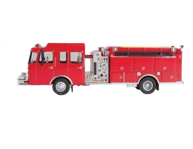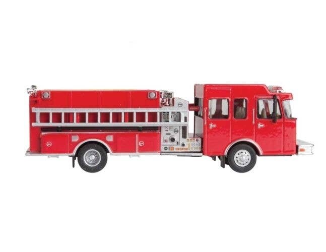 This SceneMaster HO Scale Heavy-Duty Fire Truck fills a critical role in the modern Fire Department, carrying equipment and personnel ready to handle dangerous fires. This heavy-duty rig is perfect for assignment to a firehouse in the industrial district of any HO Scale city (similar vehicles are used for heavy and specialized rescue companies, as well as incident command and control units and mobile hospitals) and looks great parked with your collection too! Each SceneMaster vehicle is a highly detailed replica, using die cast metal and plastic as appropriate to create a model worthy of your layout. On some models, moving parts can be positioned so you can display the truck in realistic work situations. Use the Heavy-Duty Fire Truck alongside other SceneMaster HO Scale emergency vehicles. Licensed replica of popular International truck Must-have for modern HO model railroads Perfect size for collectors Fully assembled and painted Realistic chrome parts as appropriate Die cast metal and plastic parts