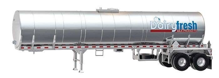 Food Grade Tank Trailer - Assembled -- Dairy Fresh Milk Products, HO, Walthers SceneMaster 12353