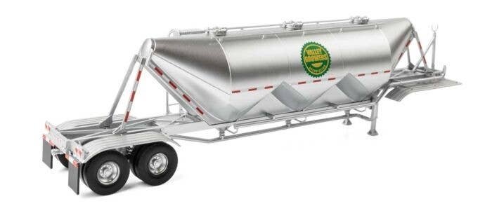 The Walthers SceneMaster Dry Bulk Trailer is an HO Scale replica of trailers which are common sights on highways and in industrial areas. They′re used for transporting powdered substances such as cement, frac sand, chemicals and more. These detailed HO Scale models are perfect for bringing added realism to your layout′s roads, industrial plants, and distribution centers. SceneMaster Dry Bulk Trailers are ideal for adding realism to highway semi truck rigs along your railroad. Large pneumatic trailers like this are used to transfer powdered substances and thick fluids for various industries Triple compartment pneumatic tank features top access hatches, discharge and charging piping Standard height kingpin allows attachment to tractors Movable wheels with metal axles Paint schemes selected to match many existing Cornerstone industries! Dimensions: 5-13/16 x 1-1/8 x 1-9/16′ 14.7 x 2.8 x 4cm Undecorated version comes unassembled for easier detailing and decoration Compatible with SceneMaster semi-tractors (sold separately) Complete your scenes with SceneMaster HO Scale vehicles!